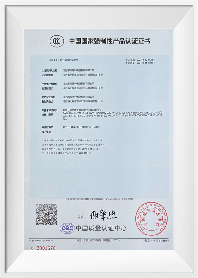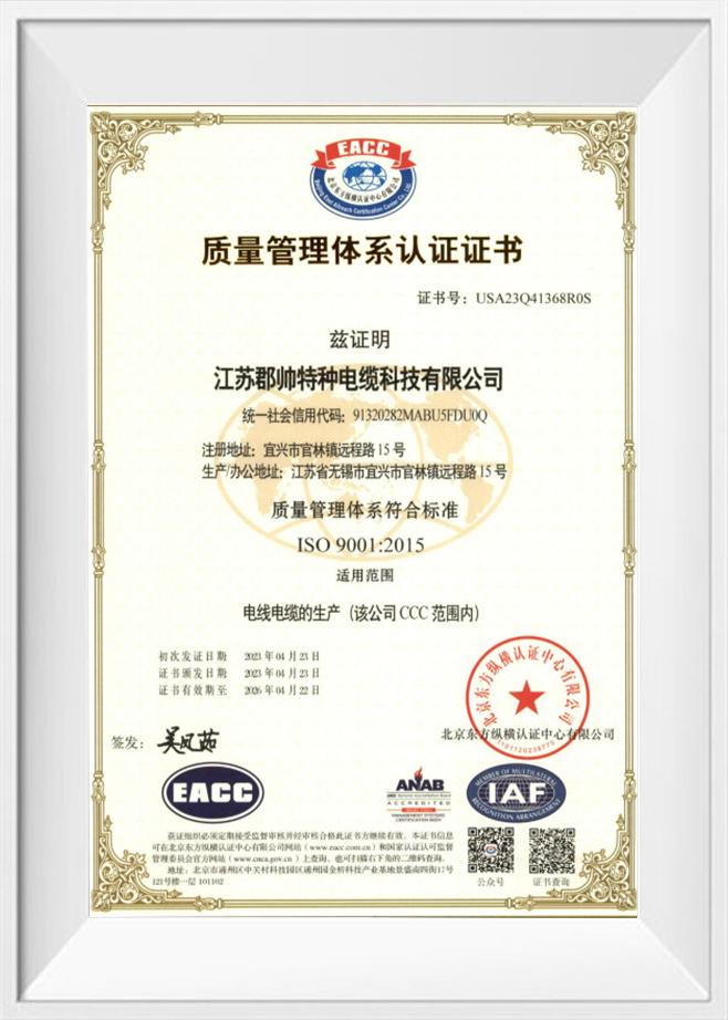Jiangsu Junshuai Special Cable Technology Co., Ltd. se spécialise dans la fabrication et la vente de fils et de câbles spéciaux sur mesure pour des applications uniques. La société propose une large gamme de produits, notamment des câbles pour chaînes porte-câbles, des câbles à enrouleurs PUR, des câbles haute et basse température, des câbles plats pour grues, des câbles mobiles, des câbles flottants, des câbles blindés, des câbles certifiés CCC, des câbles UL, des fils CE, des câbles coaxiaux et des câbles plats pour équipements mobiles haute, moyenne et basse tension. Fort de plusieurs années d'expérience dans l'ingénierie des câbles, Junshuai se concentre sur la fourniture de solutions fiables adaptées aux environnements exigeants.